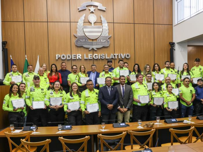 Os agentes de trânsito e transporte municipais da Secretaria de Segurança e Mobilidade Urbana (Sesmu) receberam uma homenagem da Câmara Municipal de Palmas, nesta sexta-feira, 10, durante sessão solene, para celebração ao Dia Nacional dos Agentes de Trânsito que é celebrado anualmente no dia 11 de maio. A sessão que contou com a participação do efetivo da Superintendência de Trânsito do Município foi realizada no Plenário Tarcísio Machado da Fonseca.