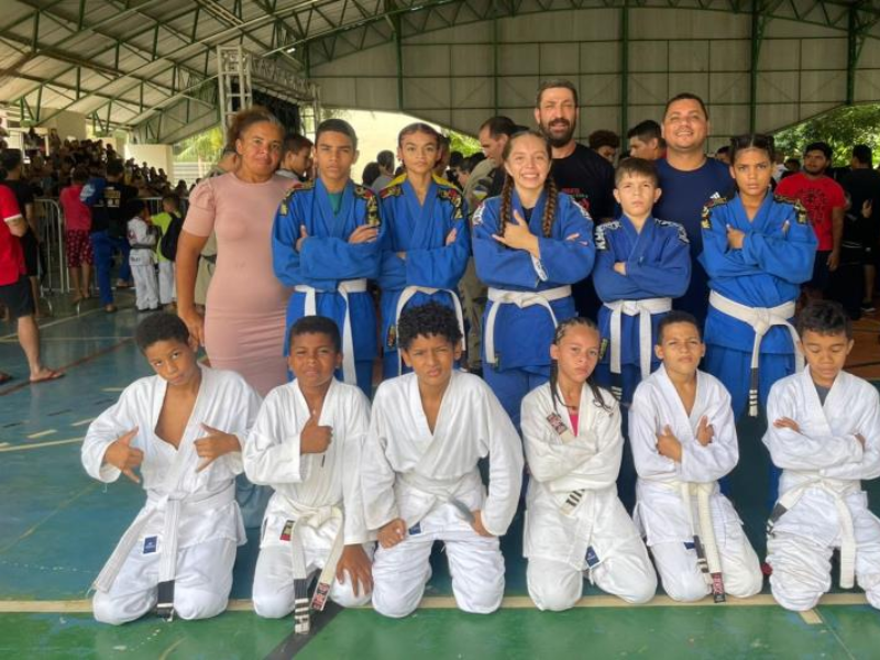 Os alunos atletas que praticam jiu-jitsu no projeto ‘Compartilhe Amor’, desenvolvido na Escola de Tempo Integral (ETI) Luiz Gonzaga, em parceria com o Instituto Nação Rap, foram destaques nos tatames da ‘Copa Faca na Caveira’, realizada no último sábado, 23. Dos 11 alunos atletas inscritos na competição, sete conquistaram medalhas. Considerada um dos grandes eventos da modalidade no Estado, a copa reuniu no Instituto Federal do Tocantins (IFTO), em Palmas, cerca de 350 atletas do Tocantins e do Pará disputando em várias categorias, conforme a idade e o perfil dos atletas.