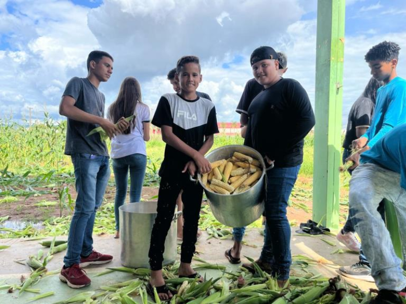 Professores e alunos das Escolas Municipais Antônio Gonçalves de Carvalho Filho, situada na Arso 111 (1.103 Sul), e Beatriz Rodrigues da Silva, na Arno 42 (405 Norte), participaram nesta terça-feira, 27, da colheita do milho, cujo plantio foi realizado nas unidades há três meses, por meio do Projeto Germinar. Os alimentos são utilizados para enriquecer a alimentação servida nas escolas da rede municipal de ensino da Capital.