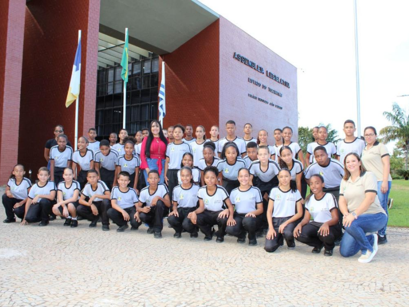 Alunos do 26º Colégio Militar Euclides Bezerra Gerais, da cidade de Paranã do Tocantins, participaram nesta segunda-feira, 19, do Programa “Assembleia vai à Escola” idealizado pela deputada estadual Professora Janad Valcari (PL).