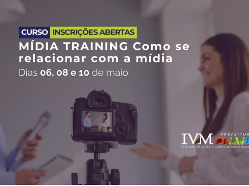 O Instituto 20 de Maio de Ensino, Ciência e Tecnologia de Palmas (IVM) anuncia a abertura de inscrições para a qualificação profissional em Mídia Training – Como se Relacionar com a Mídia. O treinamento está marcado para os os dias 6, 8 e 10 de maio e visa promover o aprimoramento dos servidores da Prefeitura de Palmas, especialmente, gestores municipais, no que diz respeito à sua relação com a imprensa. Para se inscrever, clique aqui.