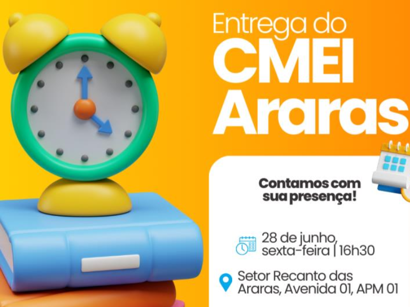A partir desta sexta-feira, 28, a rede municipal de ensino de Palmas passa a contar com mais uma unidade educacional planejada e construída para atender à educação infantil. Trata-se do Centro Municipal de Educação Infantil (Cmei) Araras, localizado no loteamento Recanto das Araras, região Sul da capital, que será inaugurado às 16h30 e entregue à população pela prefeita Cinthia Ribeiro.