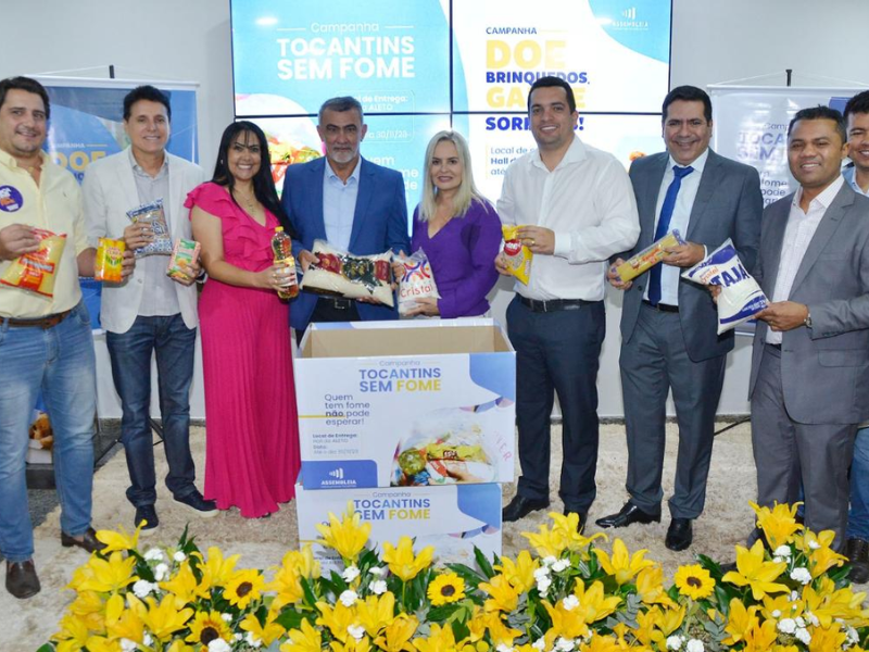 Nesta quarta-feira, 9, o presidente da Assembleia Legislativa do Tocantins (Aleto), deputado estadual Amélio Cayres (Republicanos), lançou as campanhas “Tocantins sem fome” e “Doe brinquedos, ganhe sorrisos”, para arrecadação de alimentos e brinquedos na Casa de Leis. Os requerimentos, de autoria da deputada Janad Valcari, foram aprovados em Sessão Ordinária, com o apoio do chefe do Legislativo e dos demais 23 parlamentares.