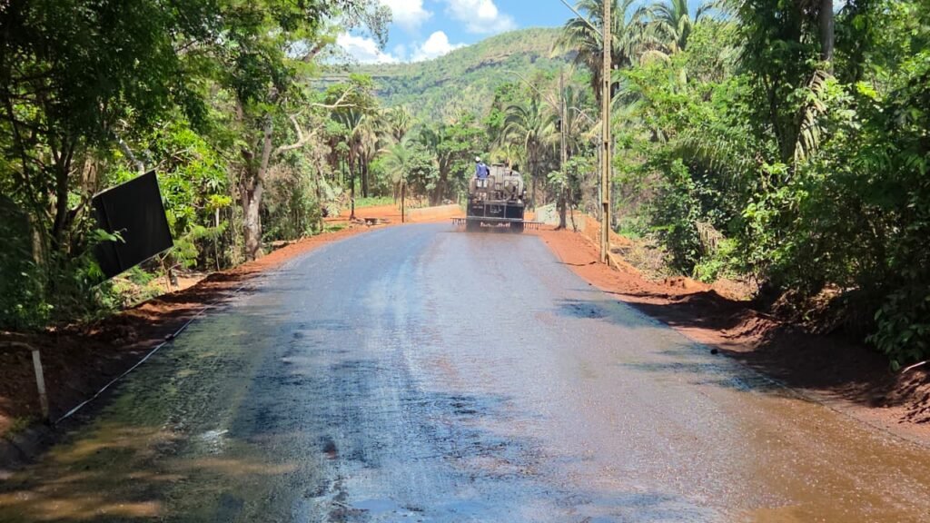As equipes executaram os trabalhos de imprimação — etapa que consiste na impermeabilização da via — preparando o trecho para receber, nos próximos dias, o pavimento em Concreto Betuminoso Usinado a Quente (CBUQ). A intervenção integra o conjunto de melhorias que acompanham a construção da nova ponte em concreto armado, com vigas pré-moldadas.