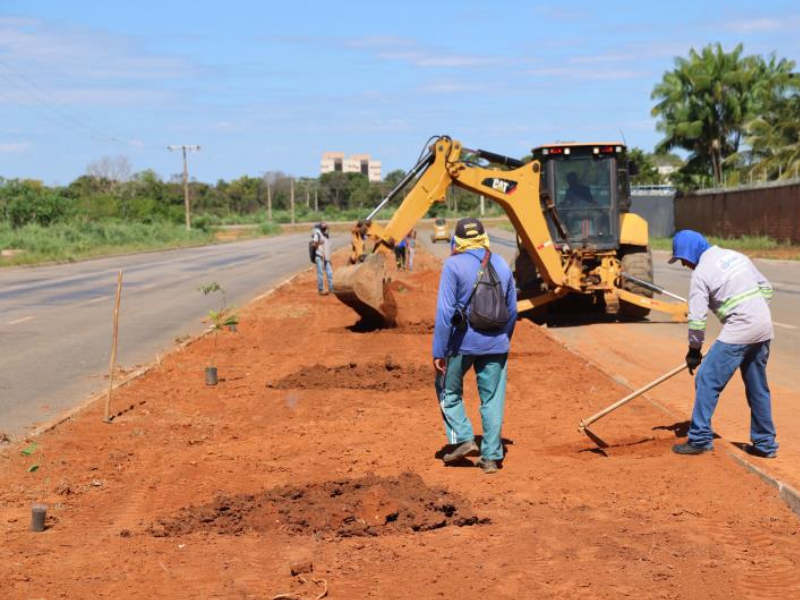O trecho da avenida que recebe a reformulação fica entre as Avenidas NS-01 e NS-05, logo na sequência as equipes vão executar o paisagismo na Avenida NS-05, entre a LO-15 e a LO-13. A máquina retroescavadeira vai abrindo as covas, e na sequência as equipes fazem o plantio de gramas e mudas. A ação está alinhada aos objetivos da gestão em transformar Palmas em uma cidade mais sustentável e com infraestrutura verde.