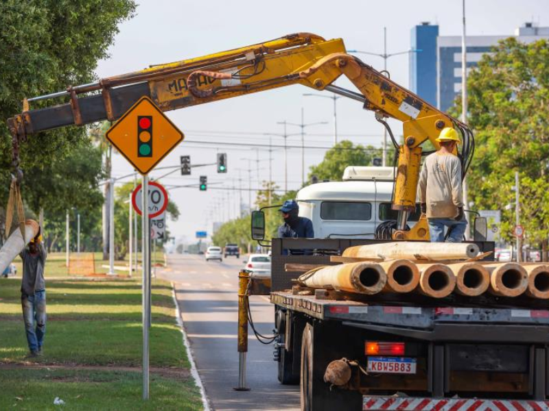 A Prefeitura de Palmas iniciará nos próximos dias a instalação da estrutura de sustentação da decoração natalina deste ano. Nesta quinta-feira, 19, estão sendo descarregados postes de concreto ao longo do canteiro central Avenida Teotônio Segurado. O descarregamento não interfere no trânsito da via.