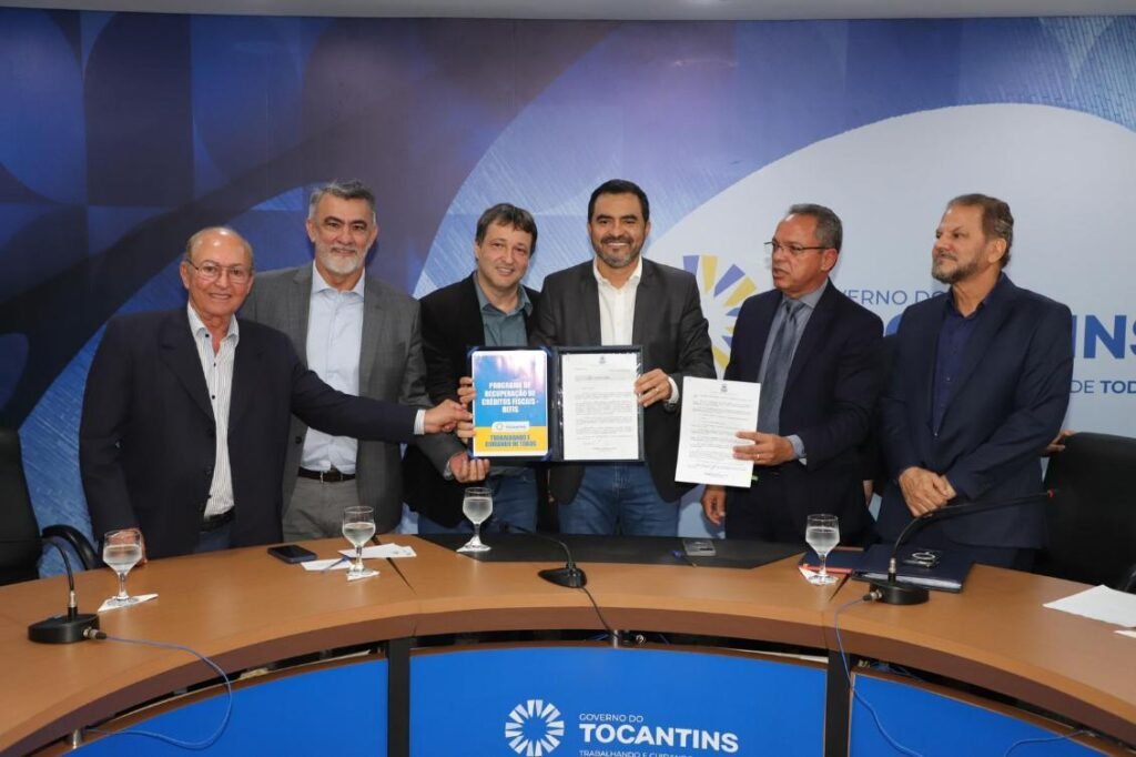 O governador do Tocantins, Wanderlei Barbosa (Republicanos), assinou na tarde desta quinta-feira, 7, no Palácio Araguaia, a Medida Provisória nº 27, que institui o Programa Recuperação de Créditos Fiscais (Refis) 2024. O projeto oportuniza a quitação ou a negociação de débitos tributários estaduais com até 95% de desconto em juros e multas.